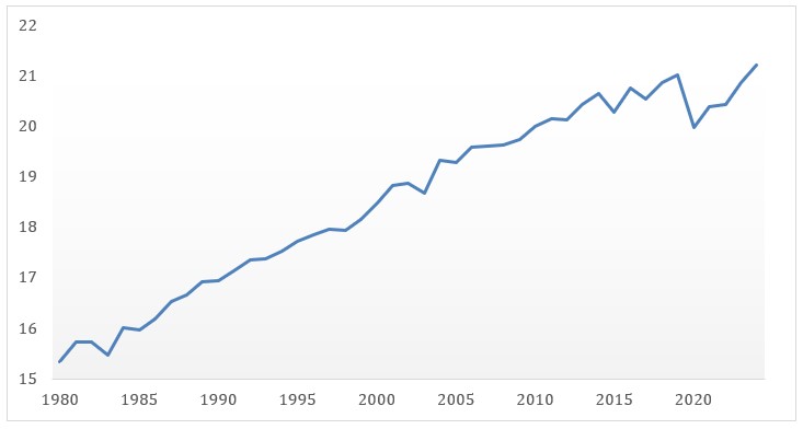 Grafico 1 – Speranza di vita a 65 anni (1980–2024)