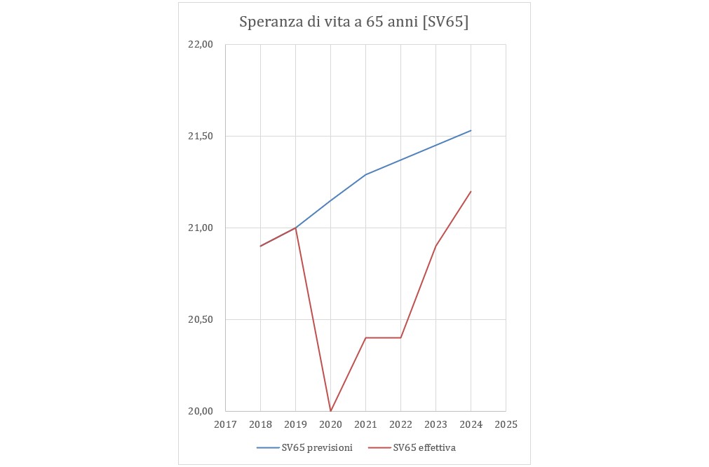 - 2021–2025: adeguamenti nulli per effetto del calo della speranza di vita durante e dopo la pandemia;
